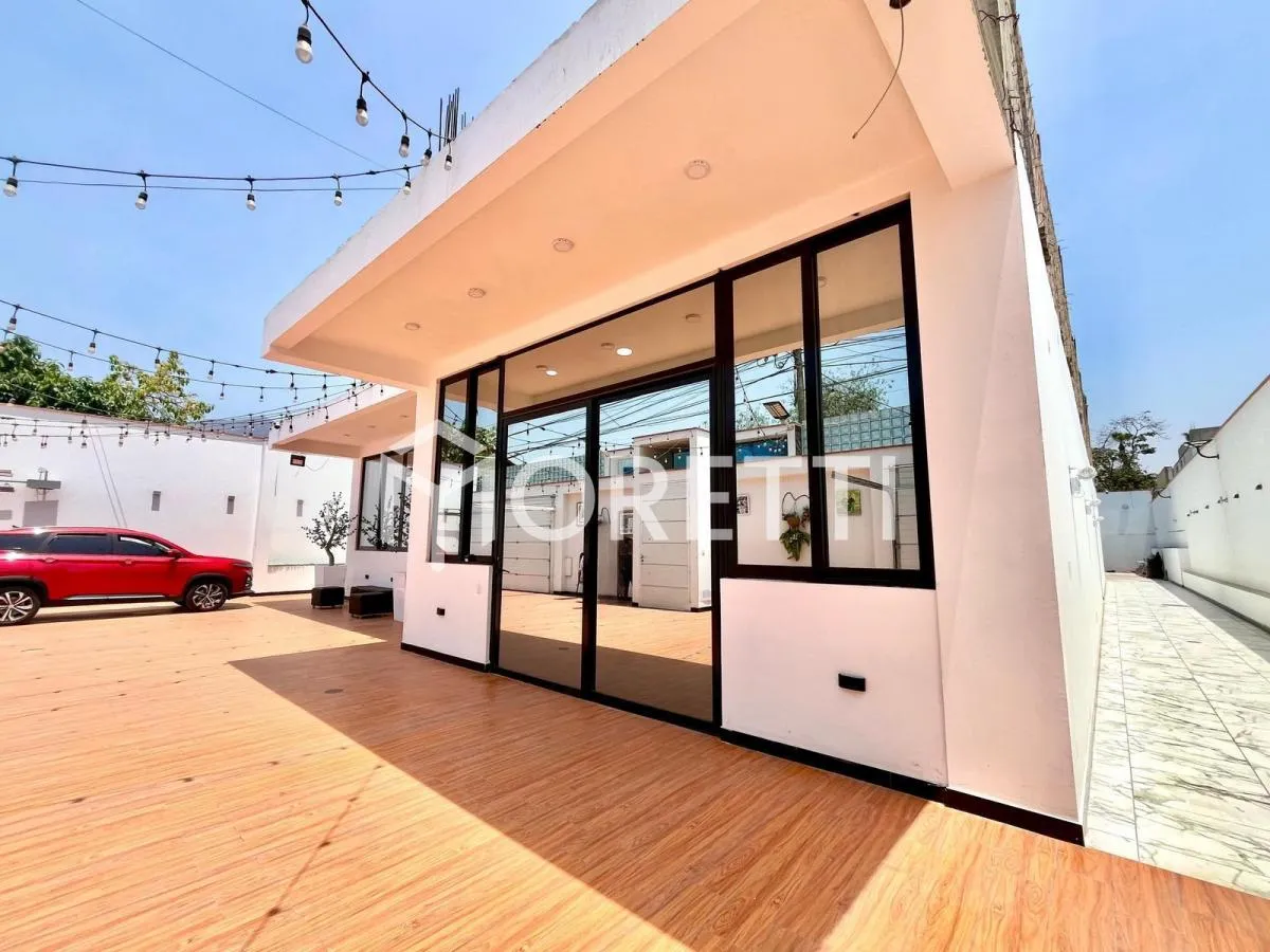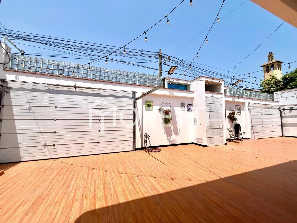 Terraza y jardín con espacio disponible para implementar piscina, área de parrilla o zona de juegos.